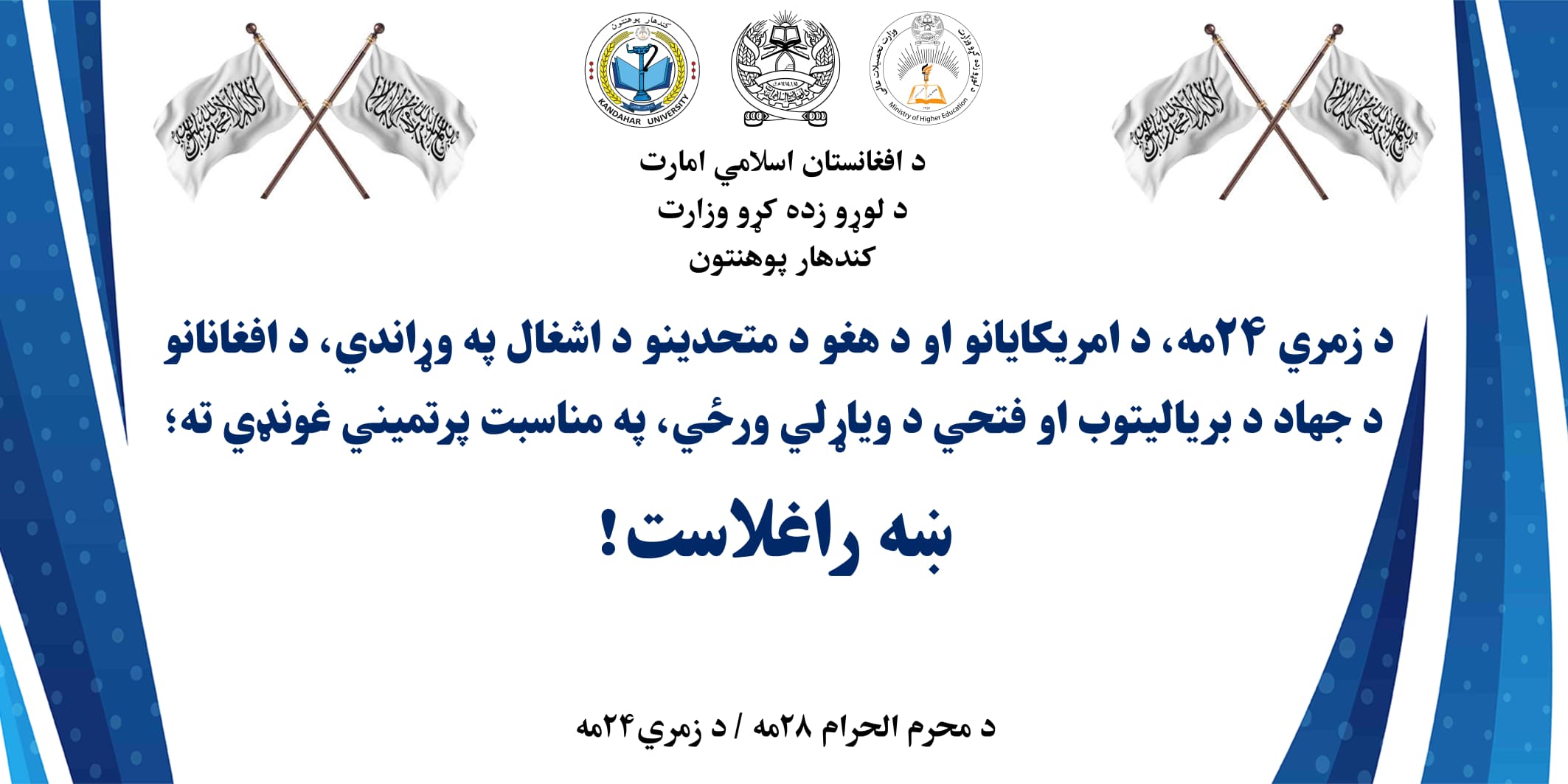 په کندهار پوهنتون کښي، د زمري۲۴مه، د امریکايي یرغلګرو له اشغال څخه د هیواد د آزادۍ درېیمه کلیزه په شانداره توګه ولمانځله سوه