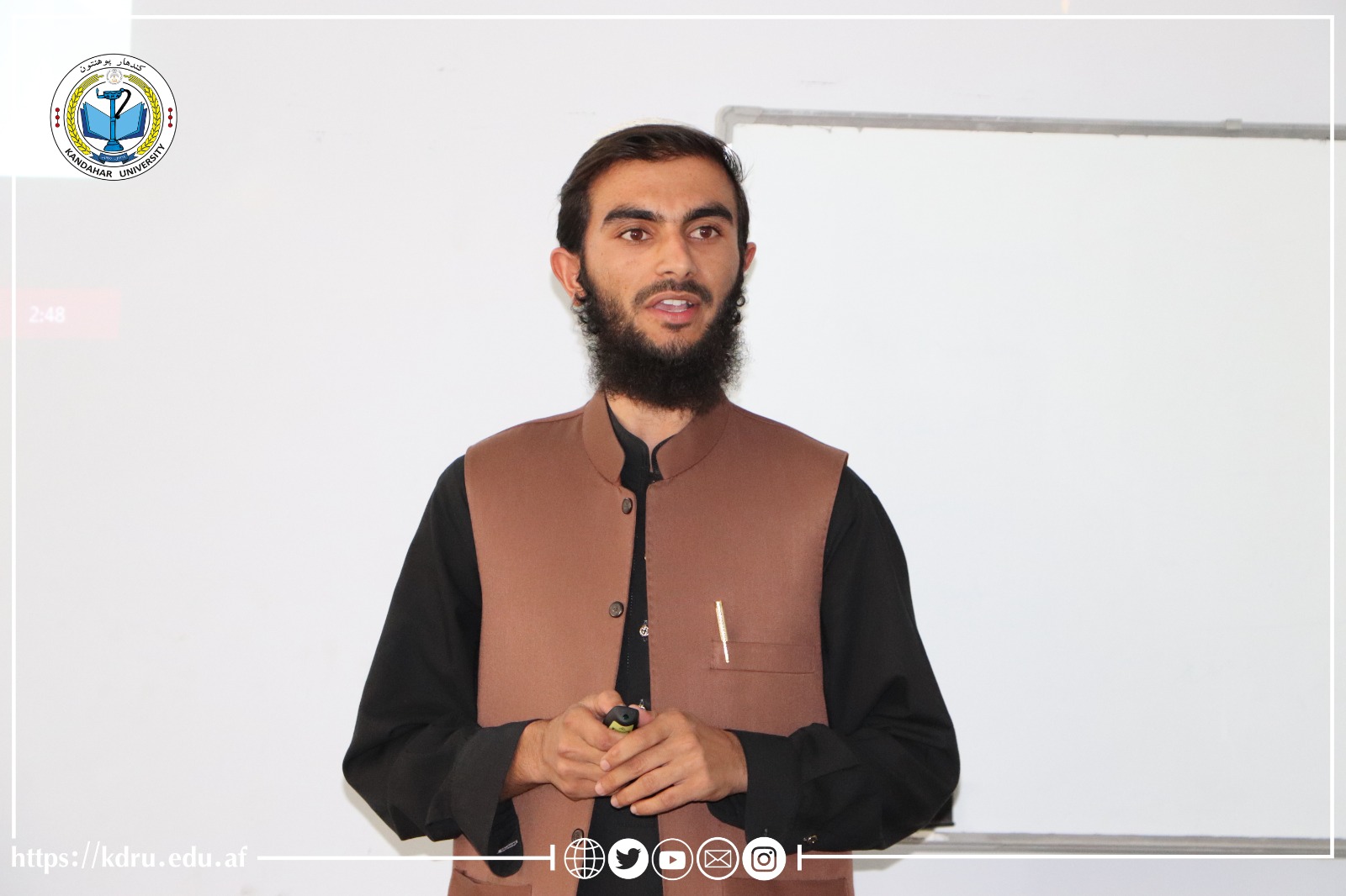سیمینار چي د قرآن کریم د څو مبارکو آیاتونو په تلاوت پېل سو؛ په سر کي د عامه ادارې او پالیسۍ پوهنځي استاد شمس الله شاداب د ادارې او مدیریت اړوند ېو جوړ سوى معلوماتي پرېزينټېشن پېل کړ، چي په هغه کښي ئې د مدیریت او ادارې پېژندنه، د ادارو ډولونه او برخي، د بست، دندې لایحې او پر نورو ګڼو اداري موضوعاتو باندي بحث او خبري وکړې.
